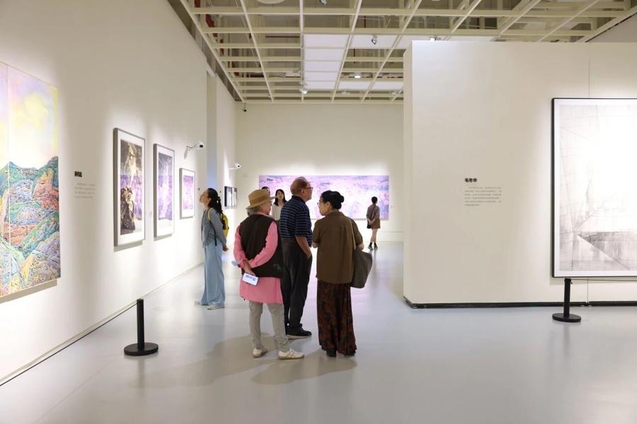在“繪:詩意江山”中,何韻蘭探索水墨與綜合材料,描繪《洪荒之力》《生命之源》;張雷平融合線條與墨韻,剛柔並濟;傅益瑤以海外視角再現唐詩宋詞中的江山;胡明哲的巖彩肅穆純淨;山丹的版畫融合自然與想象;張弛以南極創作爲山水畫注入新意;李江峯、劉麗萍、孫肖嘉、毛冬華、劉銳、周胤辰皆以不同方式頌詠祖國的大好山河。