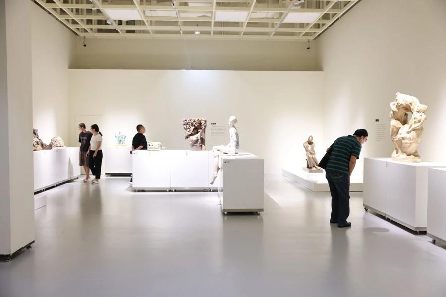 “抒:家國情懷”部分,吳慧明的雕塑讚美勞動者;林藍以“金版水墨”提煉花鳥精神,寄寓深情;潘纓以馬賽克式水墨再現女性形象;周思旻融合東西雕塑語言,形式優美;李傳真關注務工羣體,結合素描與傳統線條,刻畫真實人生;沙永匯以宏大木刻描繪時代建設;安佳、鄧柯、謝曉虹、朱智偉、唐天衣皆從不同角度表達家國深厚情感。