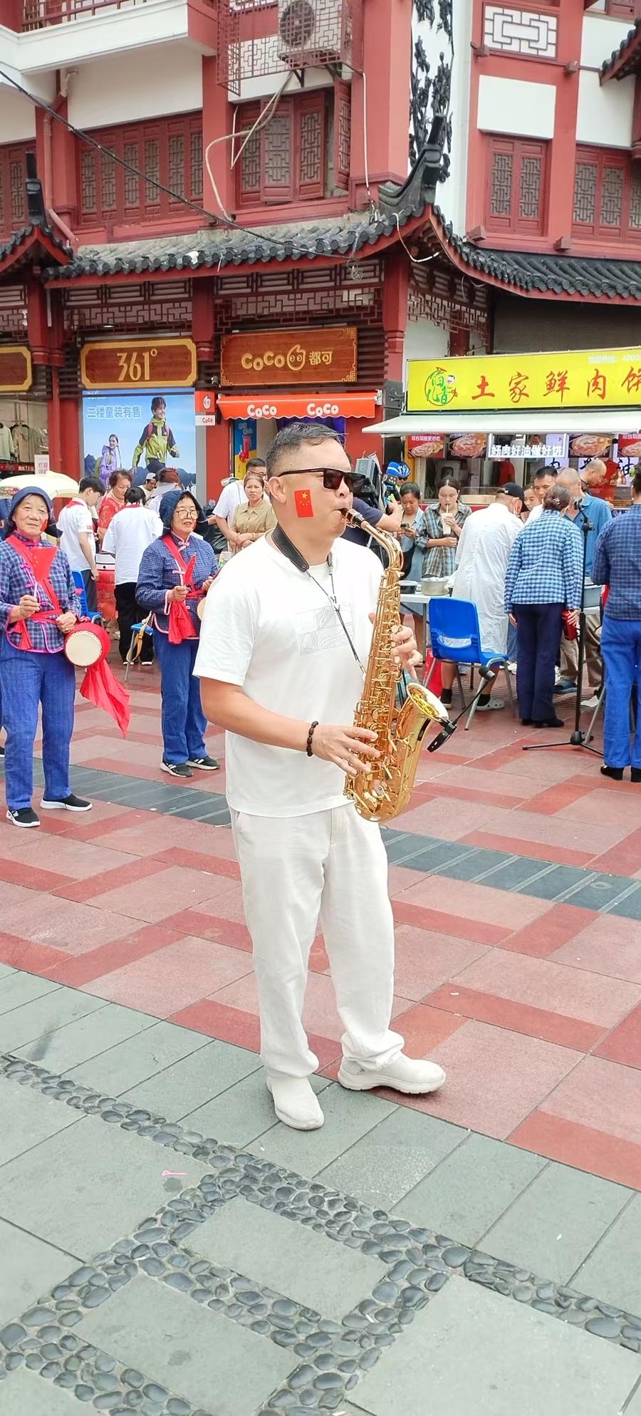 這屆“民展會”的參演節目同樣亮點紛呈。來自傅雷中學的王建軍老師吹起了薩克斯,《我和我的祖國》《南泥灣》《瀏陽河》等曲目深情而悠揚動聽,拉開活動序幕。