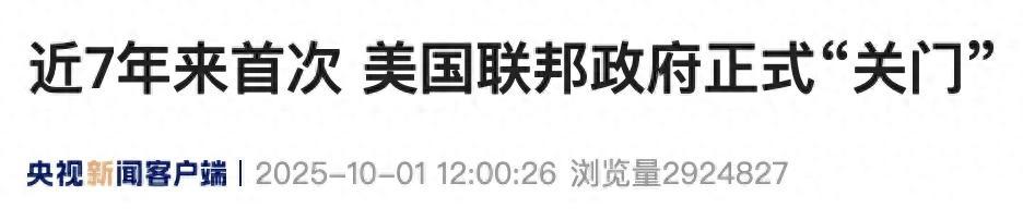 據新華社、央視新聞報道,當地時間10月1日0時,美國聯邦政府時隔近七年再度“停擺”。數十萬聯邦僱員將被迫無薪休假,部分公共服務或暫停、延遲,經濟數據發佈將受到影響。此前,美國兩黨因醫保福利方面分歧,未能就新的臨時撥款法案達成一致。