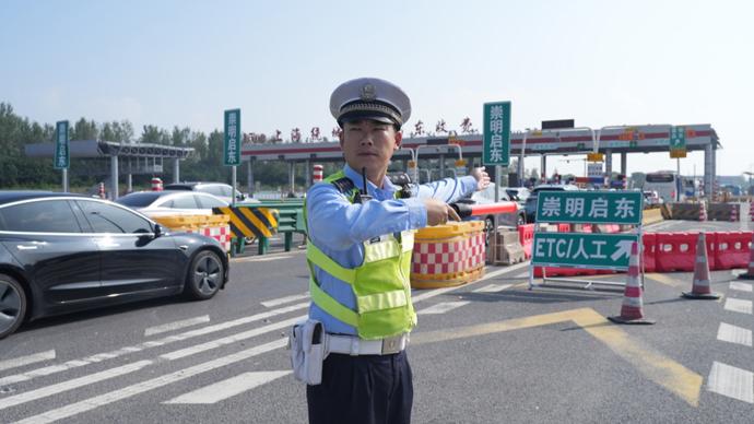 國慶中秋長假出城高峯持續,G1503高東收費站往崇明、啓東方向的車流高位運行。浦東警方多措並舉,確保道路交通整體安全有序。