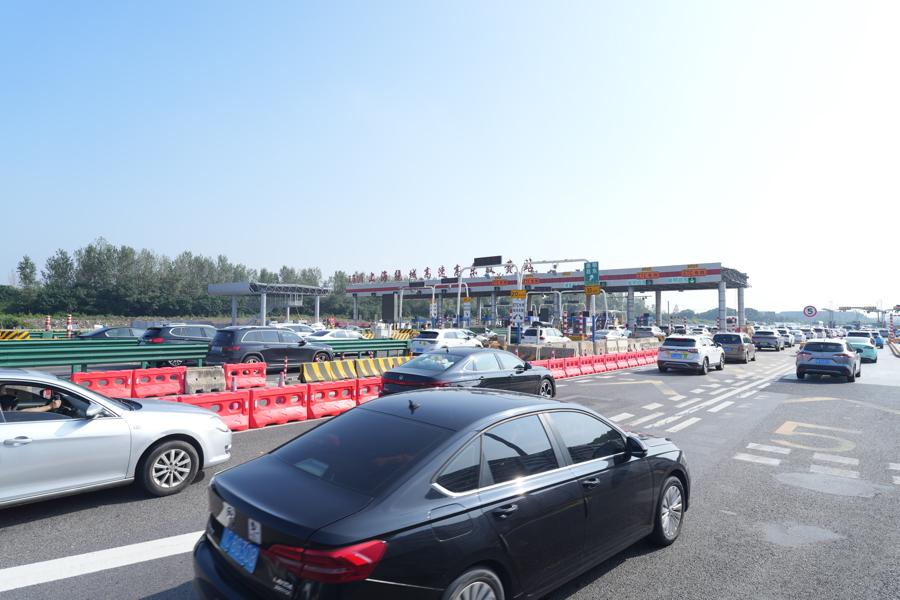 G1503高東收費站北廣場現場交警介紹,從昨日(9月30日)上午10時起車流量就有較爲明顯的抬升,車輛緩行狀態持續至今,總體道路情況平穩。