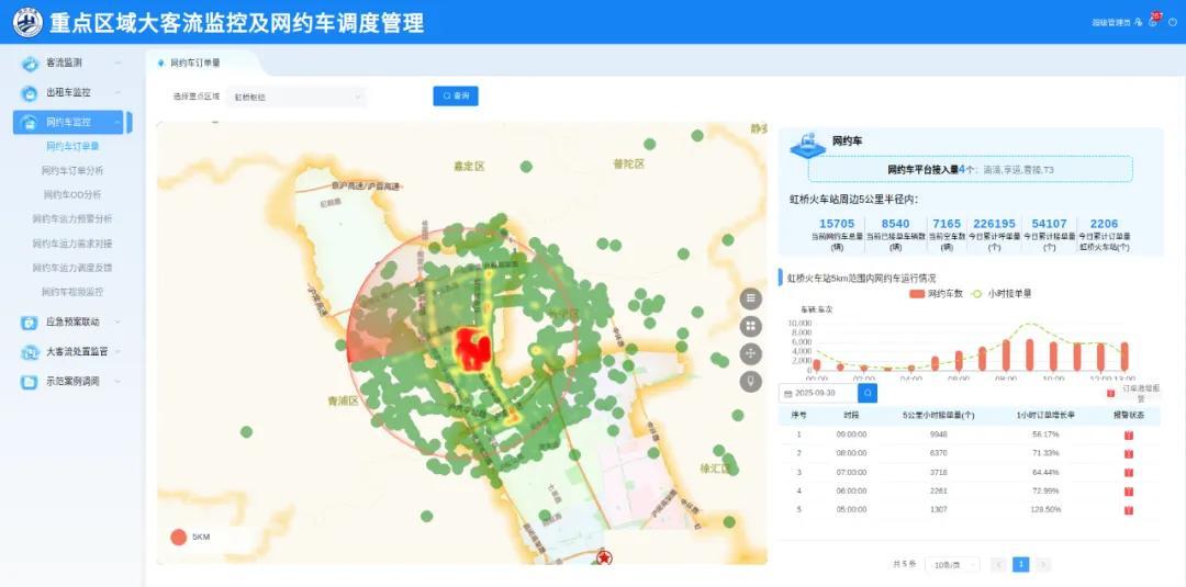 滴滴、高德、享道、曹操、T3等網約車平臺於節假日期間安排人員入駐ERC(應急響應中心)參與現場保障。各平臺通過實施駕駛員獎勵政策、擴大調度範圍、羣廣播推送引導等舉措,確保運力充足、響應及時。同時,利用“重點區域大客流監控及網約車調度管理”平臺,根據鐵路到達客流,實時調整網約車運力調度。