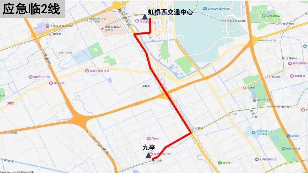 應急臨2線自虹橋西交通中心起至九亭止,下客站爲九亭地鐵站;