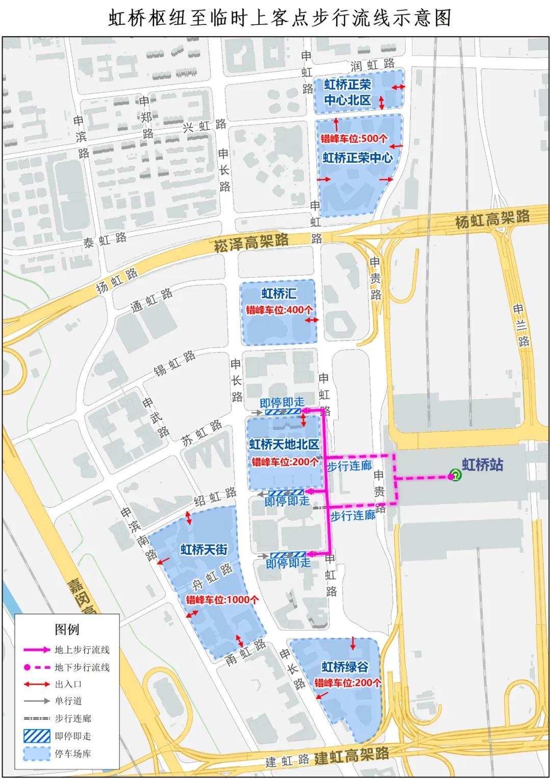 經過協調,虹橋天街、虹橋綠谷、虹橋天地、虹橋匯、正榮中心等5個商場及商務樓宇停車場,於9月30日至10月8日每日21:00至次日6:00提供總計2300個免費2小時錯峯停車泊位。
