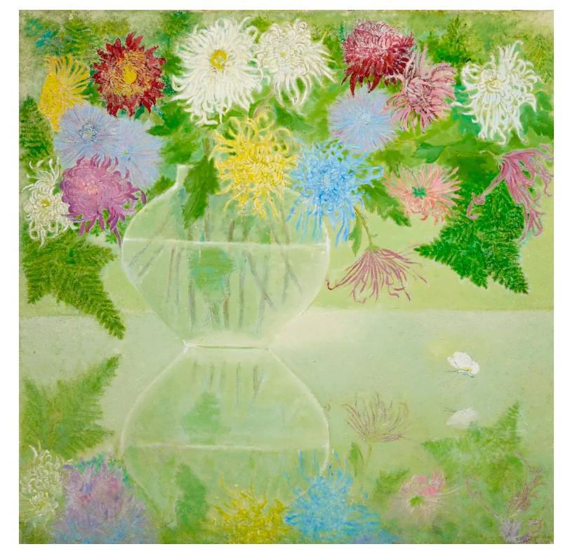 龐薰琹的兩件早期作品《菊花倒影》《蕉葉水渠》此番首展於滬,畫作以靜物變形與色面切割延續巴黎現代派的“純粹性”實驗。此外展出的上海街景主題、相關西洋風景繪畫和設計畫稿等繪畫樣式,呈現出龐薰琹從新派風格繪畫到經典美術創作,以及傳統圖樣設計等多維度的創作面孔。1925年8月,龐薰琹赴法國留學,參觀了世界裝飾藝術博覽會並深受裝飾藝術啓發。在之後繪畫創作中,他將線條見長的中國傳統裝飾圖案轉換成裝飾藝術風格的塊面和純色的視覺語言,並逐漸應用到商業美術中。