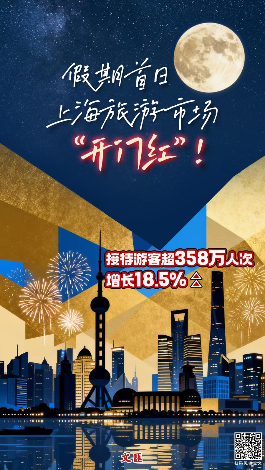 國慶中秋長假,上海旅遊市場“開門紅”。記者從市文化和旅遊局獲悉,據上海旅遊大數據監測,昨天是假期首日,本市共接待遊客358.47萬人次,同比增長18.5%。全國範圍內,上海位列國慶首日熱門目的地第二名。