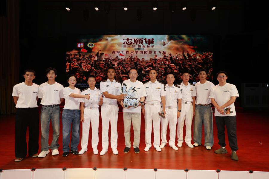 映後交流,導演陳凱歌真切地表示,“我們電影三部曲拍攝了五年時間,是什麼支撐我們走過五年,其實就是抗美援朝精神,志願軍的精神我們需要永遠傳承。”作爲海工大“老朋友”的朱亞文,鼓勵學員稱:“電影中志願軍戰士在那樣的裝備情況下跟敵人爭奪陣地,今天你們在富足的教育環境中,可以不斷去學習應用我們最精尖的軍工成果,希望大家將來以志願軍精神奔赴海疆。”