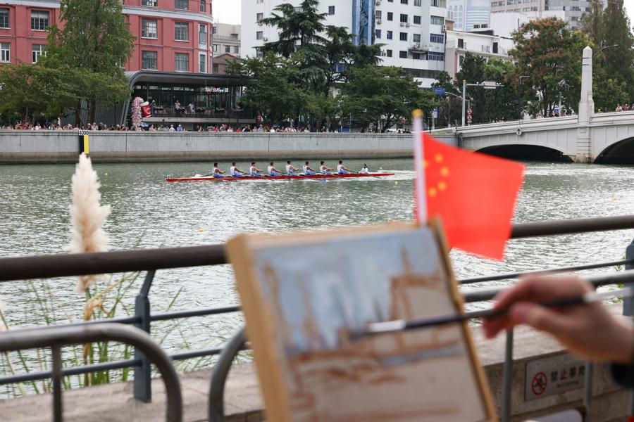 蘇州河上百舸爭流,上海賽艇公開賽破浪成光