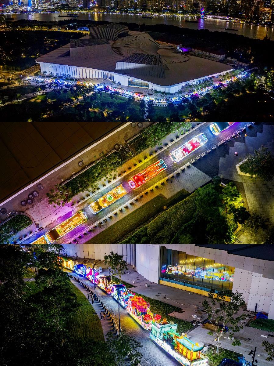 25輛中外花車在上海浦東世博文化公園亮燈展示