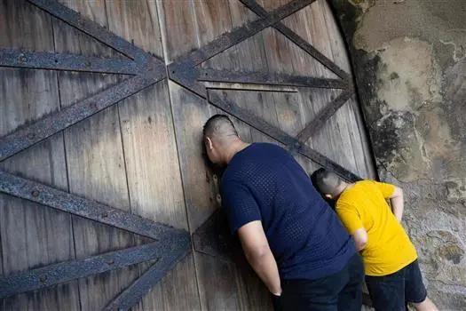 客在聖克里斯托瓦爾城堡外透過大門窺視 來源:新華社
