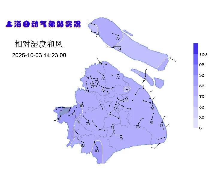 假期第三天,陰雲-陽光-陣雨“混搭”。降水零散,雨量不大,主要出現在南部地區。氣溫表現穩定,全市最高氣溫在28~31度,市區徐家彙站29.8度。但空氣溼度大部分時間都在70%以上,體感難免潮溼悶熱。