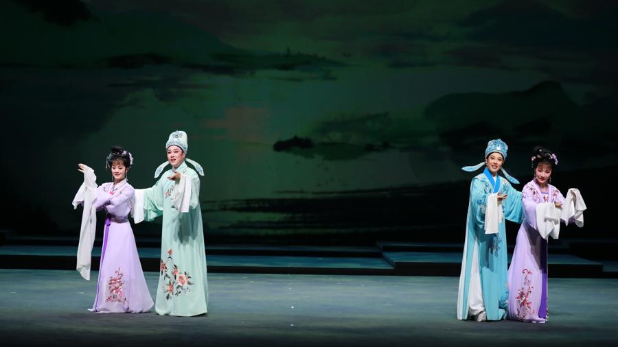 晚會在“舞臺姐妹”與“山河戀”的講述中展開第一篇章。1947年,越劇十姐妹聯合義演《山河戀》,反響轟動,成爲越劇發展史上的重大標誌事件。田漢爲此撰文《團結就是力量》,稱此事促進了越劇姐妹的覺醒和團結。至此,聯合與團結成爲越劇精神的代名詞。