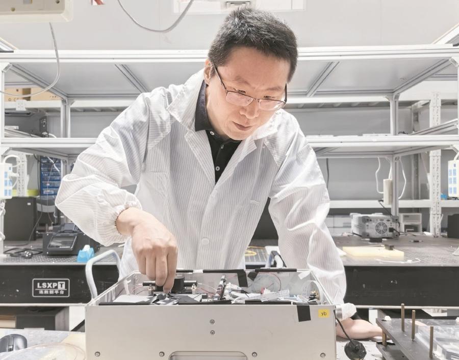 長假期間,楊康文留守實驗室,和團隊成員加緊調試飛秒激光設備。 本報記者 儲舒婷攝
