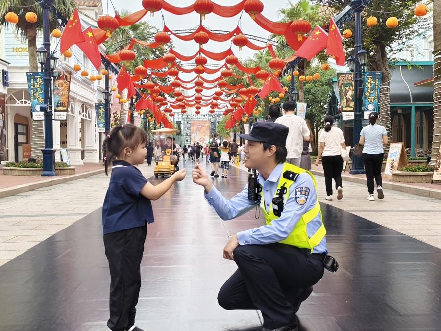 “還好有警察同志在,不然我都不知道怎麼辦了。”通過“無人機+視頻+人力”立體巡邏體系,執勤民警用時不到10分鐘就幫助遊客李阿姨找到了不慎走失的兩名外孫。據悉,爲讓遊客玩得開心、舒心、安心,警務站前置警務力量,設立“固定+機動”治安防控崗位開展防護,確保及時響應,快速處突。