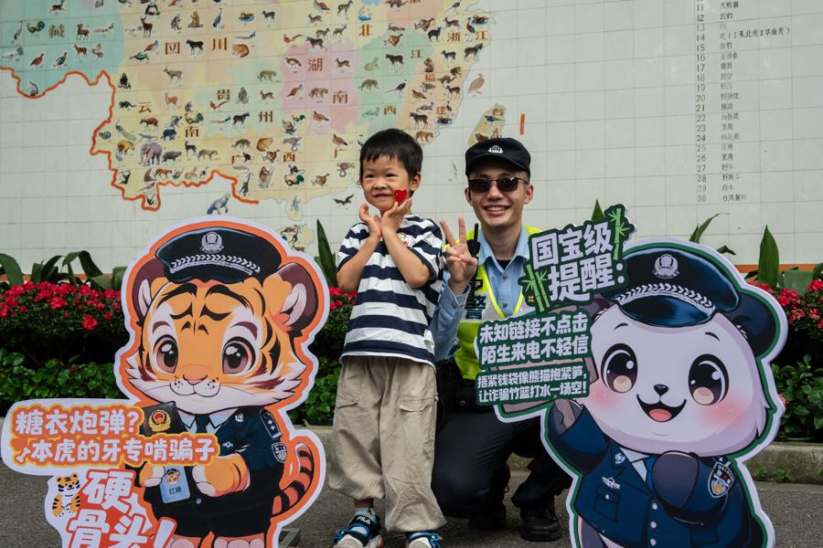 針對兒童易走失的情況,長寧警方在入口處發放防走失手環。手環上可填寫家長的聯繫方式,以便發現獨處兒童時,能第一時間聯繫家長。在接到走失求助後,民警還會協同園方通過廣播循環播報溫馨提示,有效提升尋人效率。此外,在露營區等遊客聚集場所,長寧警方進一步加強了安全督導與精細化管控。現場,民警設置了醒目易懂的安全提示標識、引導遊客規範帳篷搭建、勸阻使用明火行爲,切實預防絆倒、火災等意外風險,全方位守護每一位遊客的遊園安全。