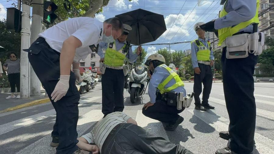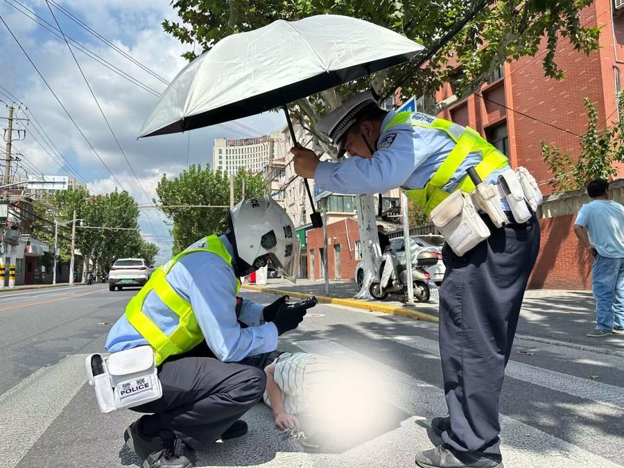 爲上海民警點贊!高溫天七旬老人過馬路不慎跌倒,民警撐傘安撫及時送醫