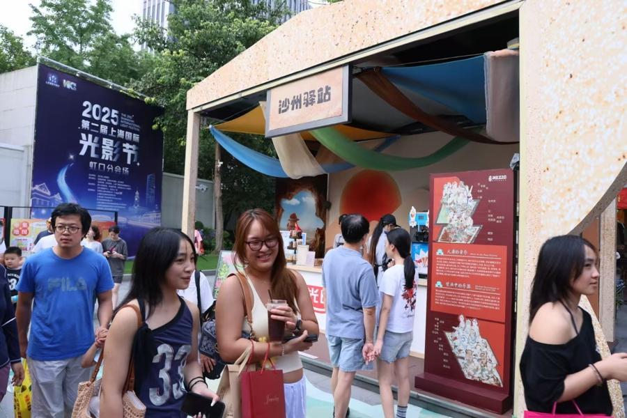 正對着建築光影秀“洞見220·敦煌奇境嘉年華”的光明食品攤位,特地將展臺佈置成“敦煌風”,吸引打卡客流不斷。攤位負責人介紹,考慮到天氣炎熱,並與其他小喫攤形成錯位聯動,此次特別推出了光明牛奶冰激凌,連續兩日成爲“銷冠”。“不少外地遊客買完還拿着我們的產品拍照。”她說,“在老弄堂裏品嚐上海味道,更有滋有味。”