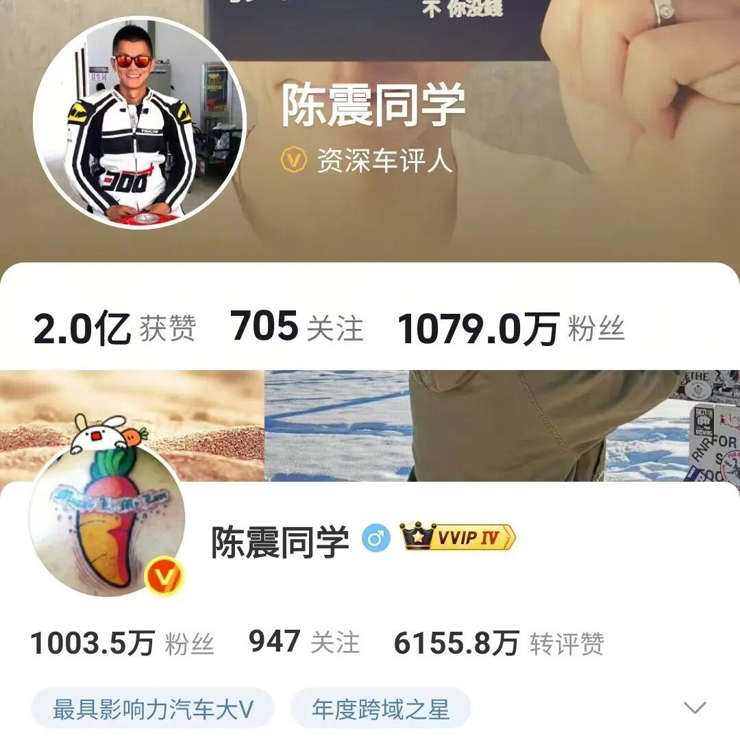目前,“陳震同學”在抖音、微博的粉絲數量均超過1000萬。