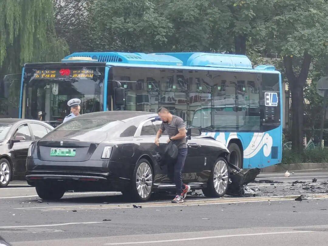 網傳照片顯示,一輛勞斯萊斯閃靈轎車停在公路上,車身損毀嚴重,安全氣囊彈出。車外人員疑似知名車評人陳震。記者對比該車的車牌號,與此前媒體曝光的車評人陳震的車輛爲同一號牌。有網友稱,該事故發生在北京萬壽路。