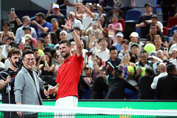 在鏡頭上寫下更標準的“德”字,用中文高聲喊出“開心嗎”,德約科維奇再次用行動回應滿場觀衆的支持。