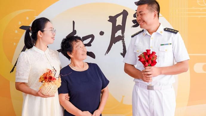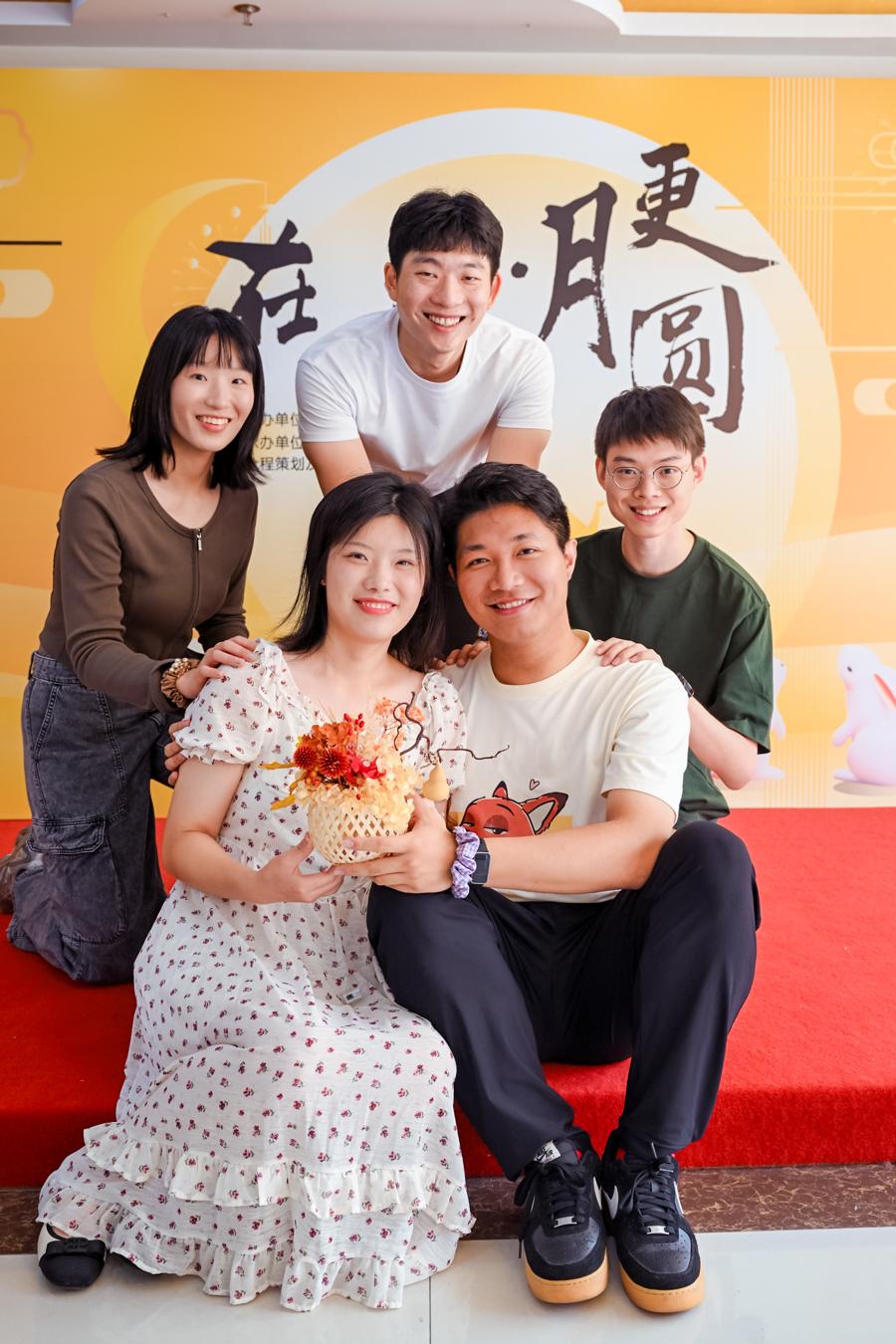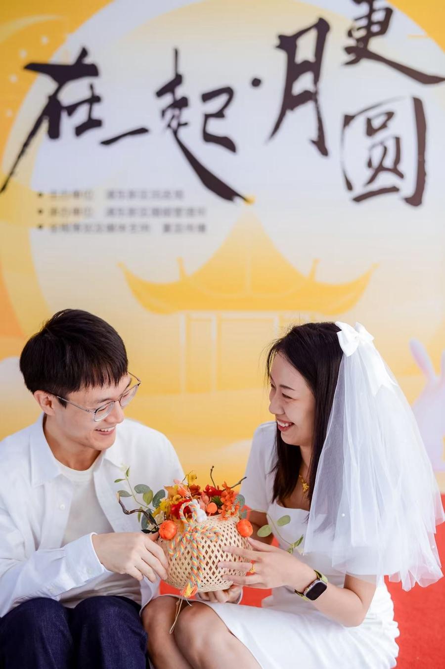 以圓月和兔子爲主視覺元素的合影區,也吸引了新人在此排隊打卡。相關負責人介紹,今年是第二年推出“團圓照”拍攝,鼓勵帶親友團的新人們在中秋佳節拍一張“團圓照”,共同見證闔家幸福。爲此,其特別設置了主題合影區,通過有溫度的拍攝服務,讓新人在打卡過程中感到全家其樂融融的氛圍。