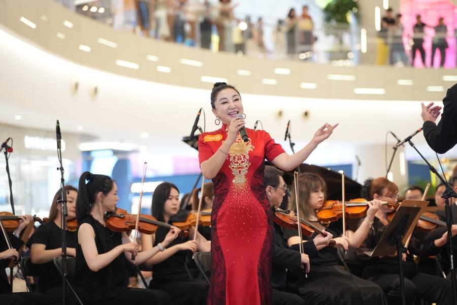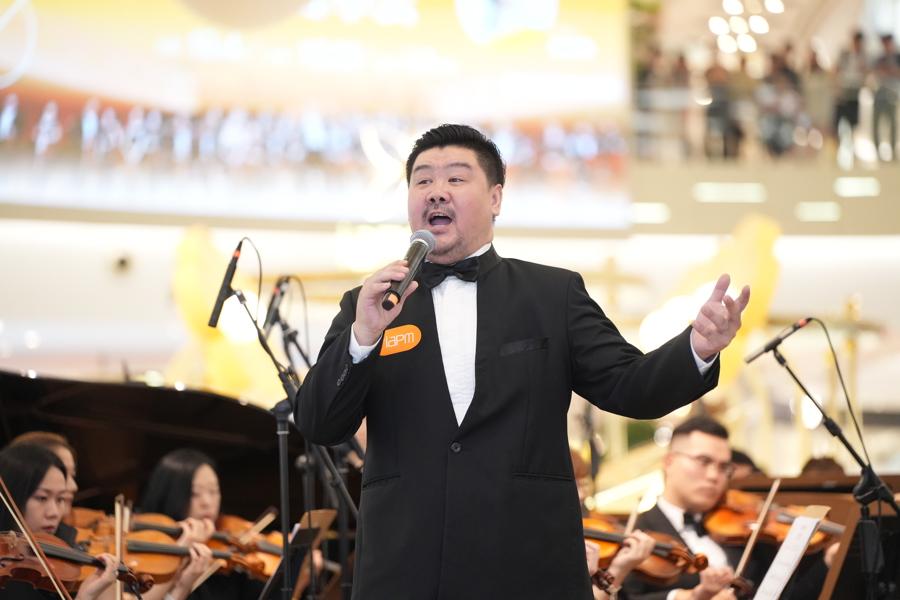 活動期間,商場特別呈現“盛世華章慶國慶交響音樂會”,以藝術語言演繹愛與夢的共鳴。本場交響音樂會由愛樂匯交響樂團擔任演奏,特別邀請國家一級指揮、愛樂匯交響樂團藝術總監及首席指揮範燾執棒,特別邀請男高音歌唱家、一級演員於浩磊,女高音歌唱家、一級演員吳春燕傾情獻唱。