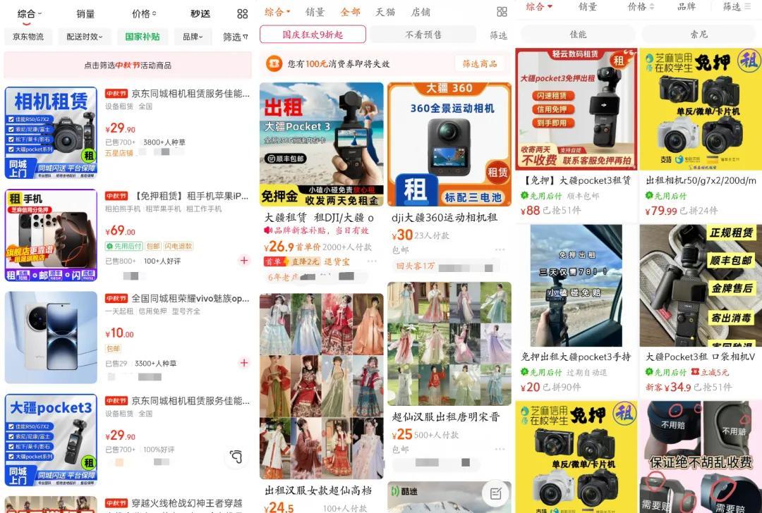 在租期上,傳統租賃以長租爲主,租期一般爲3個月—2年,而新租賃主打“短租+組合租”模式,租期從1天到1年全覆蓋。比如租相機匹配3天旅行行程、租互動遊戲機滿足週末宅家需求,主打一個讓“臨時需求”能被高效滿足。