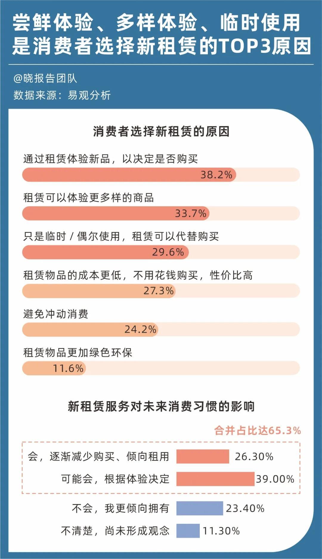 更重要的是,租賃還成了年輕人“低成本試錯”的工具,幫他們在消費前避免“踩坑”。易觀分析調研顯示,有38.2%的人選擇租賃是爲了“體驗新品,決定是否購買”,還有33.7%是想“體驗更多樣的商品”。