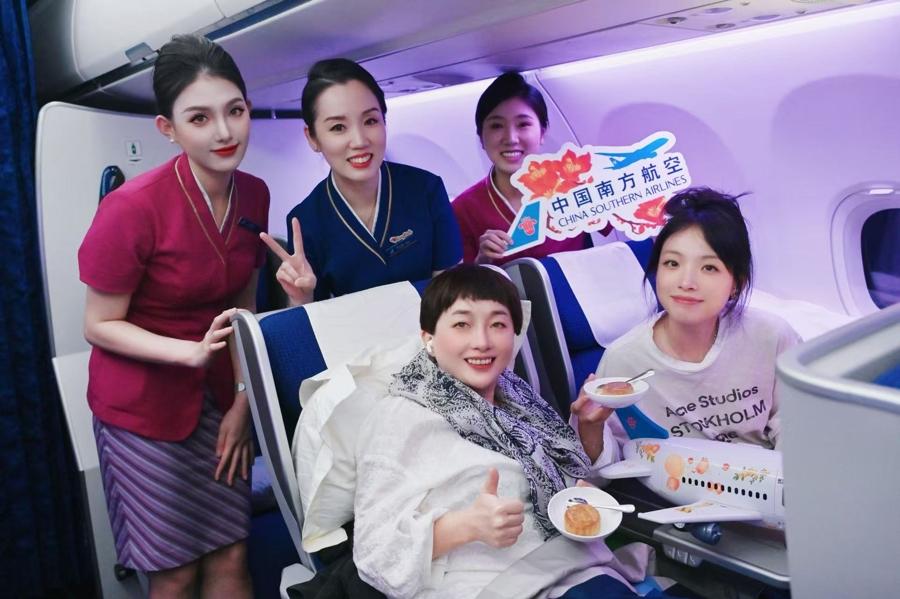 南航上海分公司在CZ8243/4(虹橋-成都往返)、CZ8197/8(浦東-成都往返)等航班上開展中秋節主題特色航班活動,通過話中秋、送祝福、制燈籠等互動環節,將客艙化作移動的雲端“賞月亭”,爲旅客編織了一段兼具傳統韻味與溫情出行體驗的空中團圓記憶。