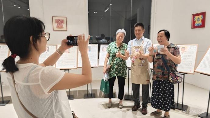 此次展覽吸引了不少傳統文化的愛好者,每天前來展館參觀的人們絡繹不絕。他們中不乏鍾愛越劇的戲迷朋友,有些還是慕名而來。當幾位老戲迷認出爲展覽做講解的竟是齊春雷時,激動地說道:“儂是齊春雷?啊呀!儂到崇明來了?太多年沒看到你了……啊呀激動得來……拍照拍照!”驚喜萬分的他們趕緊招呼自己的女兒女婿們爲他們和齊春雷一起合影留念。臨走時,老戲迷們依依不捨地拉着齊春雷的手說道:“下次你們一定再來噢。來崇明演出,我們一定還來看、一定還來看!”