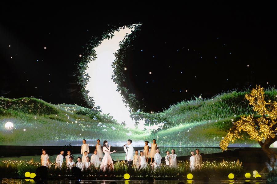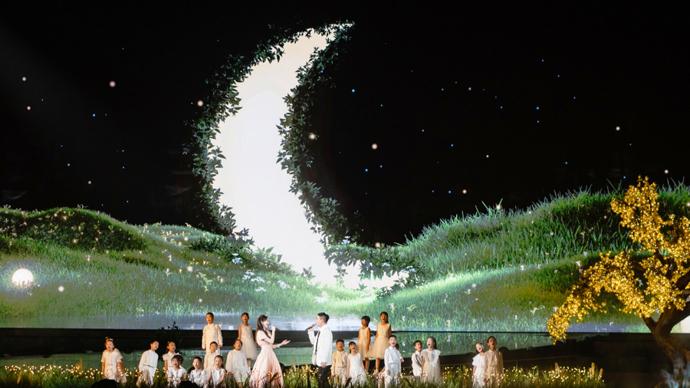 晚會還用歌聲娓娓道來親情、愛情、友情、故鄉情。繾綣深情的《月半小夜曲》、治癒暖心的《不要慌,太陽轉身有月光》、溫情脈脈的《月亮翻過小山坡》……藉助藝術和技術的融合表達,舞臺意境隨歌曲主題不斷切換,讓觀衆在這一幅幅寫意畫卷中,沉浸感受人間至真、至純、至暖的情感共鳴。