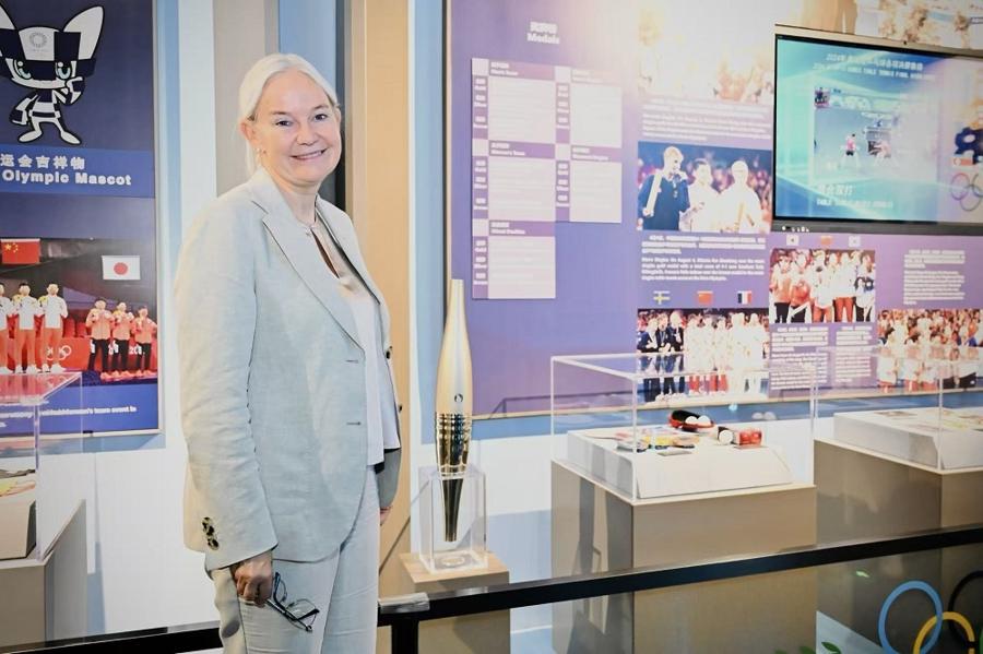 此次造訪上海,索林的主要目的就是參觀國際乒聯博物館/中國乒乓球博物館。與此同時,作爲國際奧委會委員,她還親手爲這座場館帶來了象徵奧林匹克精神的2024年巴黎奧運會火炬。
