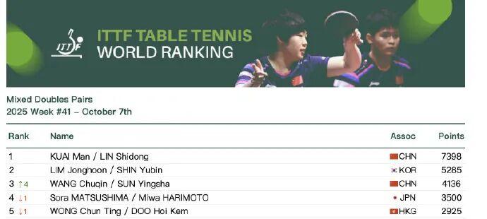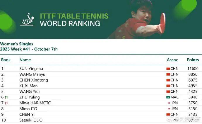 最新世界排名公佈!國乒今天誕生兩位“萬分王”