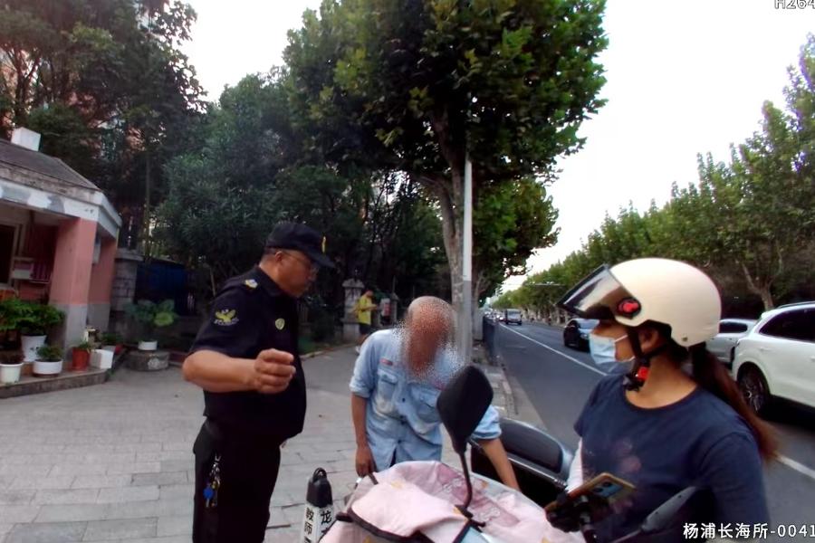 接到求助後,長海路派出所民警迅速響應,第一時間與徐阿婆溝通,詳細瞭解陳老伯的體貌特徵與可能去向後,立即調取沿途的公共視頻,仔細追蹤老人的軌跡。半小時後,民警通過視頻發現陳老伯步履蹣跚地走進附近“文化佳園”小區之後再未出現。