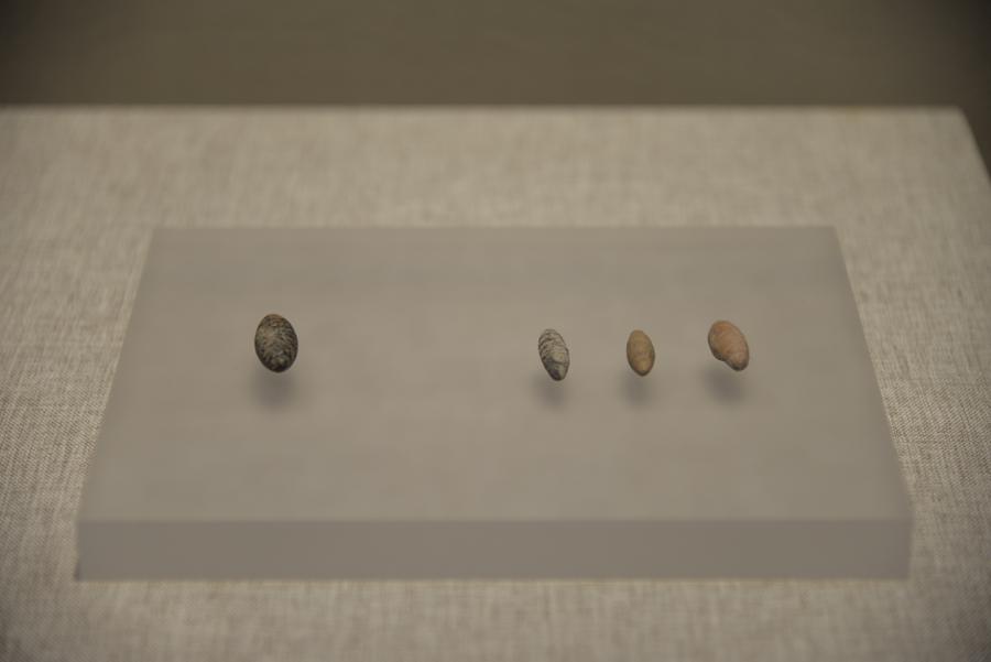 嫘祖養蠶的歷史傳說,也由實物照進現實。1926年,李濟在夏縣西陰村第一次獨立主持田野考古發掘,標識中國近現代考古的開端。距今約6000年、人工切割的半個蠶繭的出土,力證此地爲中華先民栽桑養蠶的重要發祥地。如今,這珍貴的半個蠶繭標本,收藏於臺北故宮博物院。而靜臥於運博展櫃的幾枚石雕、陶製蠶蛹,同樣證明古老的傳說不是空穴來風——它們出土於西陰村遺址附近的師村遺址,距今約6000年。