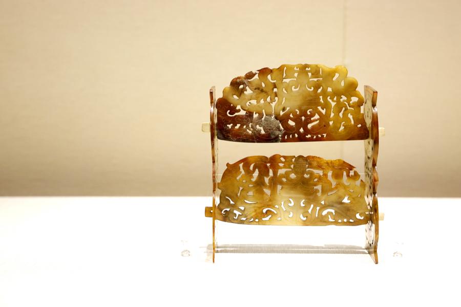 圖爲定州博物館鎮館之寶之一:東漢透雕神仙故事玉座屏。