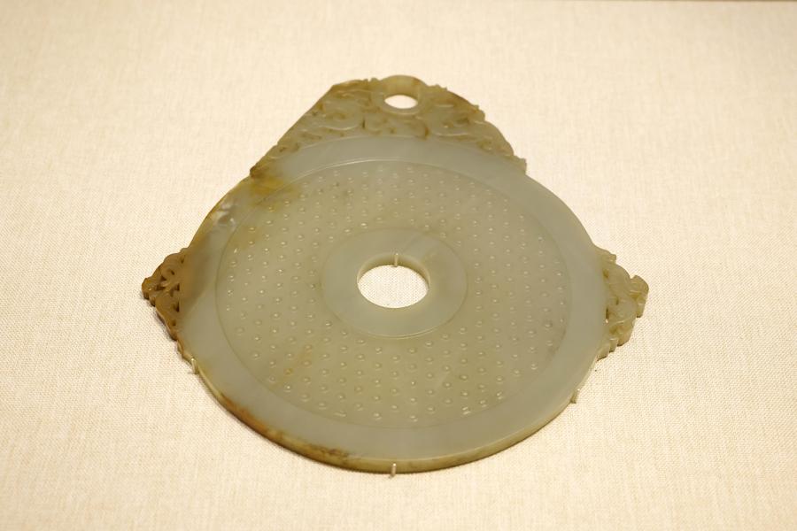 圖爲鎮館之寶之一:漢龍螭銜環乳釘紋青玉璧。