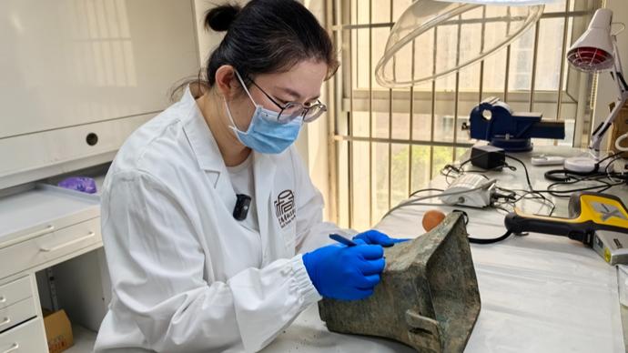 寶雞青銅器博物院文物保護修復工作人員白丹,本科學的是化學工程與工藝專業。受紀錄片《我在故宮修文物》的啓發,她對文物修復產生了濃厚興趣,2017年進入博物院從事文物保護修復工作;3年後,她考取西北大學文物與博物館專業,攻讀碩士學位。