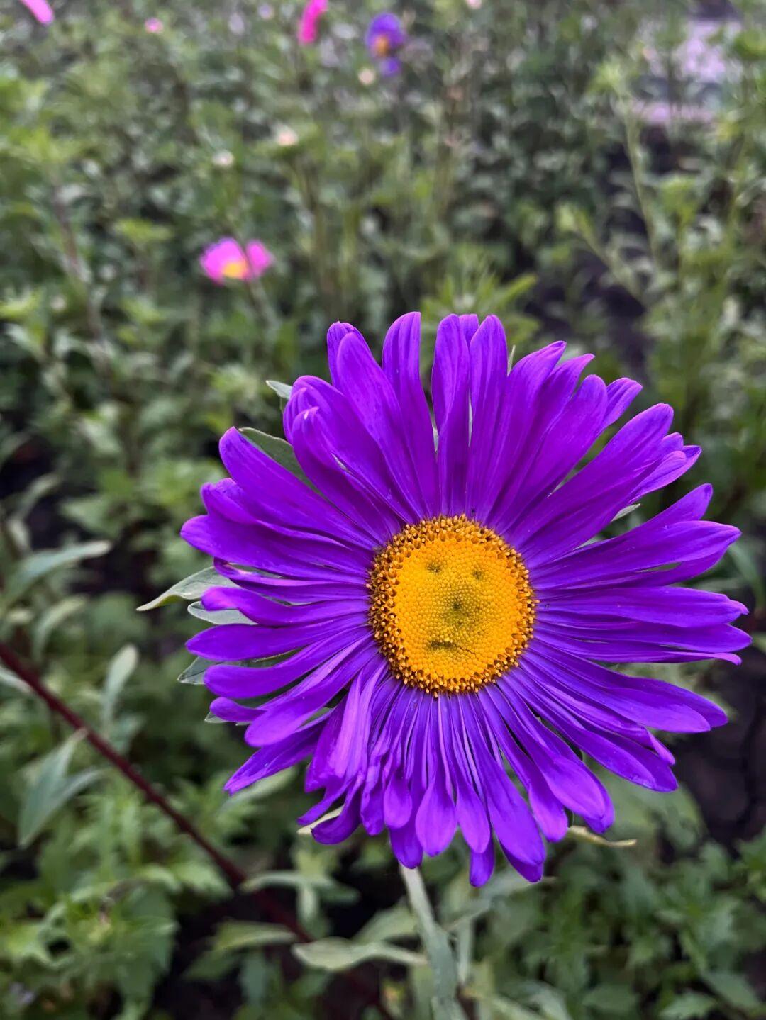 一朵翠菊舉了一張笑臉給我看。花瓣圍繞在笑臉周圍,像是嬰孩的臉龐一樣天真。