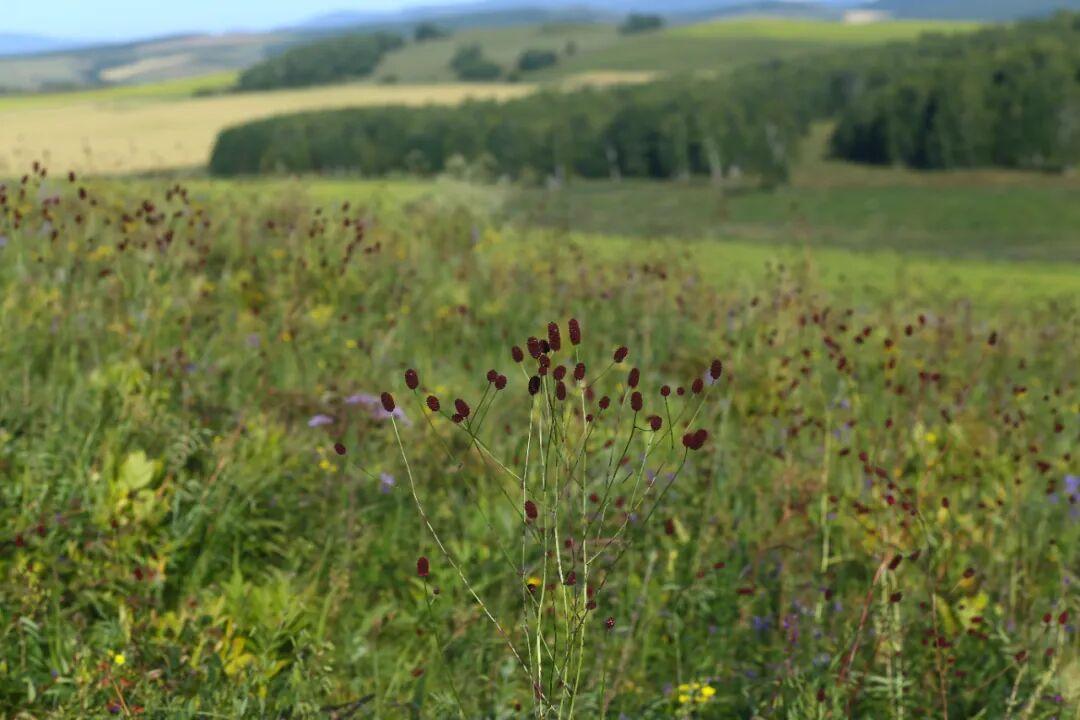 地榆的花很特別,暗紅色的穗狀花序像一根根小小的烤腸,或者是很成熟的桑葚。一根根暗紅色的烤腸舉起來,你在草叢中一下就能把它們辨認出來。