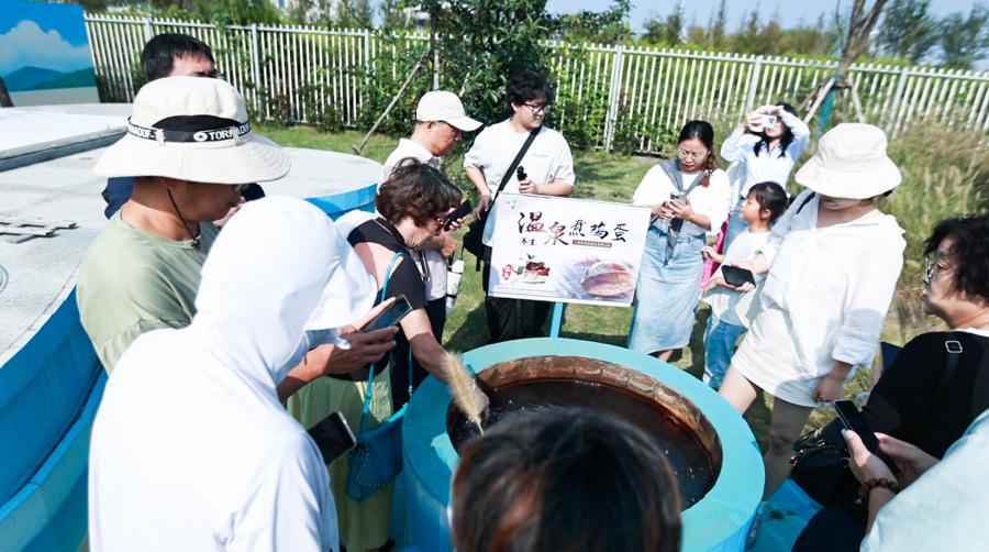 活動期間,百家渠道合作商負責人沿着精心設計的路線,沉浸式體驗如東的多元文旅業態。在林克斯溫泉小鎮,代表團成員們參觀了康養溫泉,感受溫泉樂園的歡樂;在黃海之濱的最美海岸線,驅車遊覽潮水湧起後的黃海,感受海洋生態與趕海拾貝的樂趣;走進溫泉展示中心,大家不僅瞭解如東溫泉的起源,更品嚐了口感特別的溫泉雞蛋;在栟茶古鎮,穿梭於古老的建築之間,品嚐地道的海鮮美食與農家菜餚,觀看東萊閣燈光秀和精彩的如東雜技表演。每到一處,合作商們都認真記錄、積極拍攝,詳細詢問景點特色、接待能力及合作政策。
