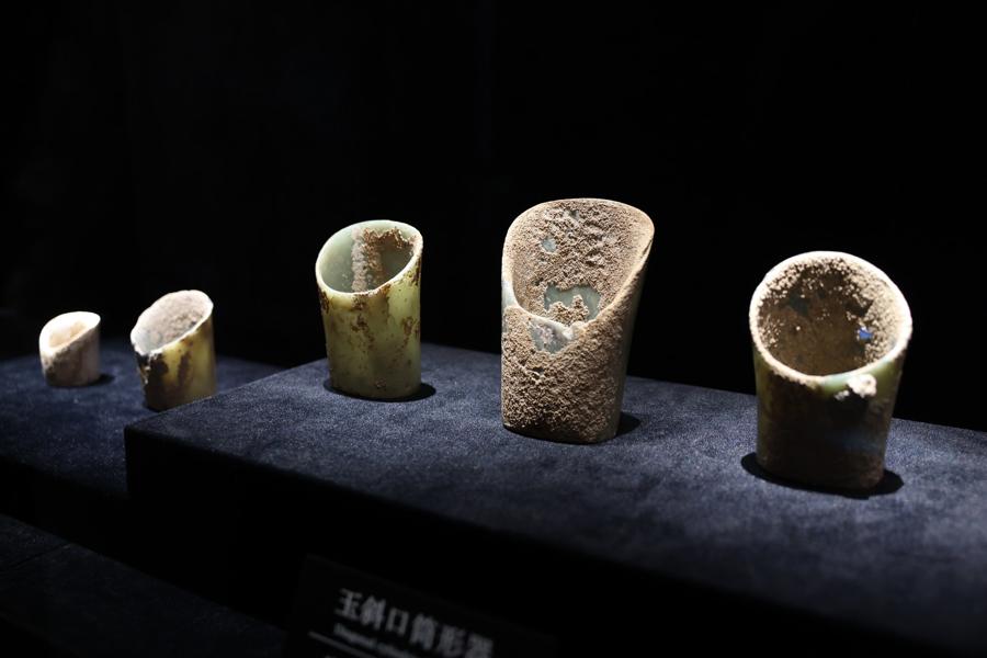 玉斜口筒形器:此類器物是紅山文化玉器的典型代表之一,通常出土於上層階級的墓葬或中心大墓內。專家認爲,它可能與古代龜靈崇拜和龜卜習俗有關,又或者是以該器物上下貫通的特性而具備着通祖達仙的信息功能。