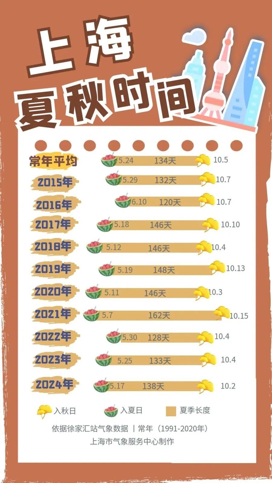 數據顯示,上海夏季天數常年平均爲134天,去年夏天長度爲138天,而今年夏天從5月12日開始至今已達150天,並且從目前的預報來看,夏季仍將維持一段時間。