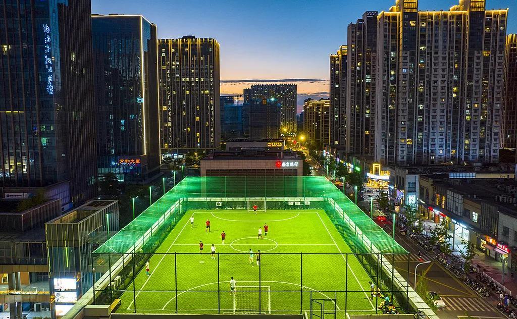 以小巴的周遭爲例:小區地下室開了家幾十平米的小型健身房,月卡只要100元;家門口原本的老廠房搖身一變成了籃球館,白天青少年培訓,晚上球友們熱汗蒸騰;高架橋下曾荒廢的橋洞,被改成了羽毛球場,沒有圍欄,大概是免費的;還有屋頂新建的足球場、沿河鋪出的塑膠跑道……