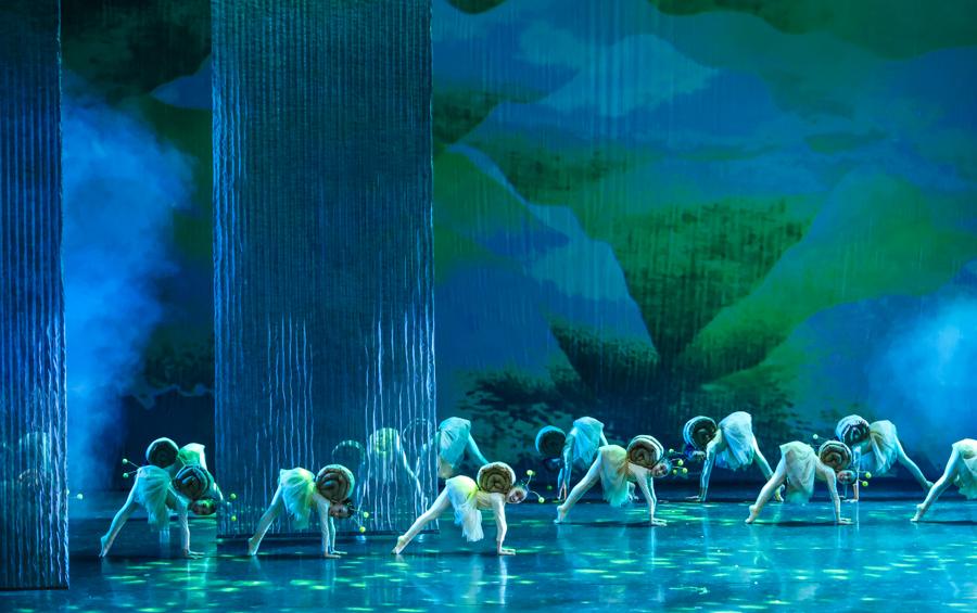 舞蹈詩集全劇彙集400餘名6至18歲的小演員參演。他們用稚嫩卻堅定的舞步、天真且飽滿的情感,生動詮釋了二十四節氣的流轉與美好。每一個節氣都對應一首經典詩詞和一個主題舞蹈。從展現立春打“春牛”農耕景象的《觀小兒戲打春牛》,到呈現暮春春筍蓬勃生長的《春夜喜雨》;從描繪清明時節蝸牛喜雨、踏青賞春的《清明》,到勾勒夏日荷葉漣漪景緻的《山亭夏日》,孩子們不再是簡單機械地背誦詩詞,而是通過富有感染力的身體律動與真摯的情感投入,“跳”進詩境,“舞”出節氣,成爲古詩意境的親歷者與傳遞者。