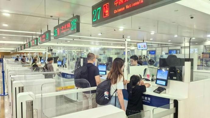 假期期間,通過免籤和240小時過境免簽入境的外籍旅客5.5萬餘人次,佔入境外籍旅客數量的近54%。今年以來,隨着免籤政策紅利的持續釋放,疊加口岸通關便利化舉措的優化升級,上海空港口岸國際航線不斷擴容和郵輪旅遊市場的逐步復甦,上海口岸出入境客流量呈現出持續攀升的態勢,特別是在“五一”、暑運、國慶假期等重要節點,出入境客流高峯更是頻現。