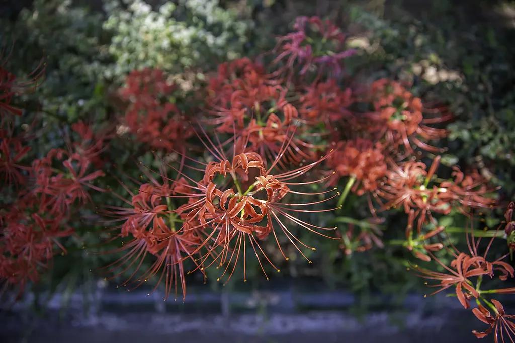 石蒜花原產於我國南方,多生於陰溼的山坡和河岸草地,在陽光充裕的環境下會開放得更加鮮豔茂盛。如今,國內許多南方城市的植物園都栽種了大片的石蒜花。