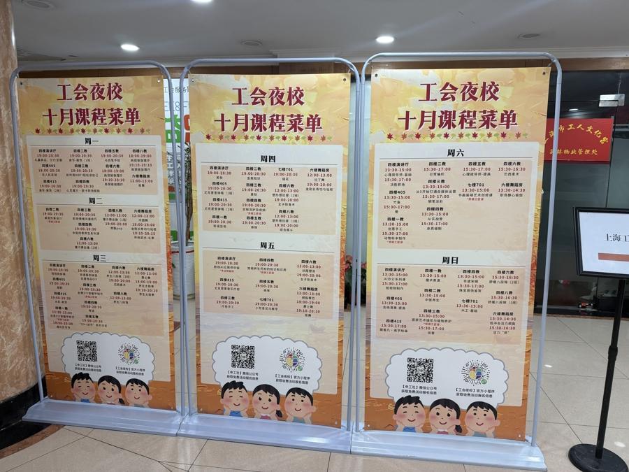 市工人文化宮晚上燈火通明,職工們的“第二課堂”開始了!上海工會夜校實行春夏秋冬四季開班,首期秋季班今晚正式開班,廣大職工利用工作日午間、晚間及雙休日參加課程學習,“日校+夜校”模式更方便職工結合自身實際選擇時間段。