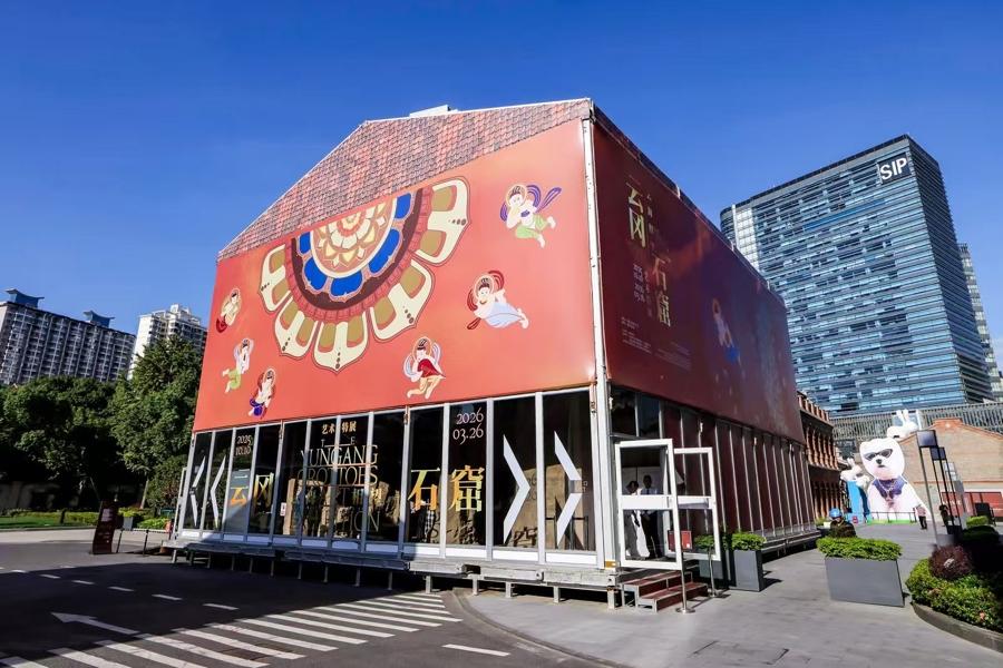 展覽採用雙展區布展模式,構建兼具學術價值與藝術通感的觀展路徑,使觀衆“看見從未看見,聽到從未聽到”。位於今潮8弄海派文化中心區的戶外展區以雲岡第12窟“音樂窟”爲核心,呈現全球首例可移動3D打印1:1複製洞窟,觀衆可自由探索千年石窟細節,欣賞北魏天宮伎樂翩躚;趣看美術館室內展區則分爲“化相”“匠道”“光息”“神往”四個單元,以多重維度講述雲岡藝術世界。雲岡石窟最具標誌性的第20窟佛首,以及在滬重現的第20窟西立佛,也作爲本次特展的重磅展品亮相。